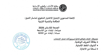 لائحة المدعوين لاجتياز الاختبار الشفوي لماستر : التميز الحكامة والتنمية الترابية 2025 – 2026