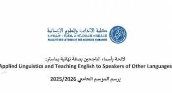 Master : Applied linguistics and Teaching English to Speakers of other languages (2025-2026) المدعوّين لاجتياز الاختبار الشفوي لولوج ماستر...