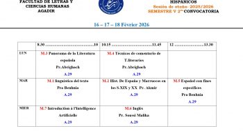 استعمال الزمن – شعبة الدراسات الإنجليزية (English Studies) – الدورة الربيعية -الموسم الجامعي 2025/2026