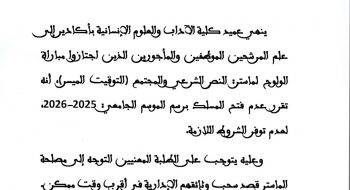 برنامج امتحانات الدورة الخريفية الإستدراكية 2025/2026 – مجتمع المعرفة والتحولات المعاصرة