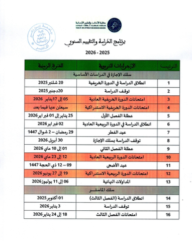 برنامج الدراسة والتقيم السنوي 2025-2026