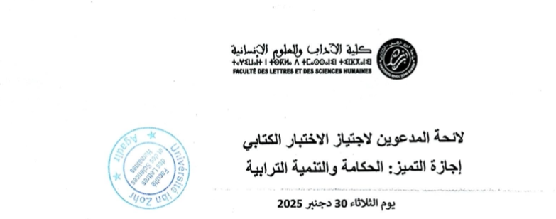 لائحة المدعوين لإجتياز الاختبار الكتابي لإجازة الحكامة والتنمية 2025-2026