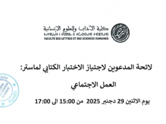 لائحة المدعوين لاجتياز الاختبار الكتابي لماستر: العمل الاجتماعي 2025-2026