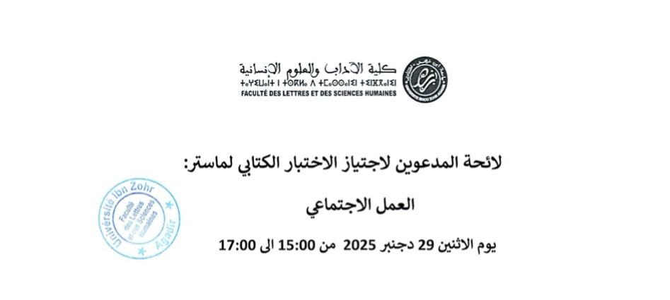 لائحة المدعوين لاجتياز الاختبار الكتابي لماستر: العمل الاجتماعي 2025-2026