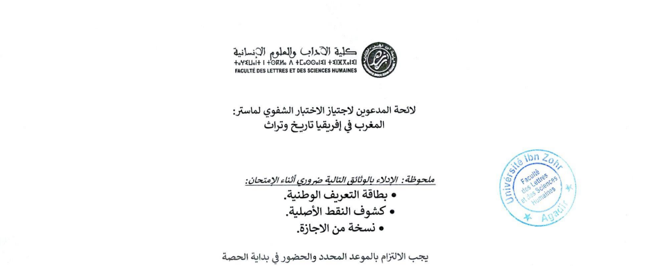 لائحة المدعوين لاجتياز الاختبار الشفوي لماستر: المغرب في إفريقيا تاريخ وتراث 2025-2026