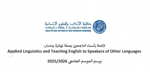 لائحة بأسماء الناجحين بصفة نهائية بماستر : Applied linguistics and Teaching English to Speakers of other languages