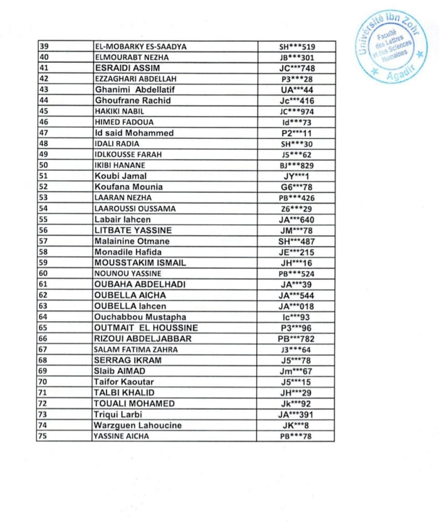 لائحة بأسماء الناجحين بصفة نهائية بماستر : الأدب الأمازيغي والترجمة 2025 – 2026