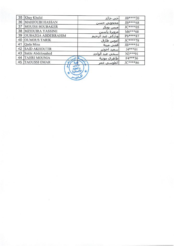 لائحة بأسماء الناجحين بصفة نهائية بماستر : Français, communication et translittératie numérique 2025 – 2026