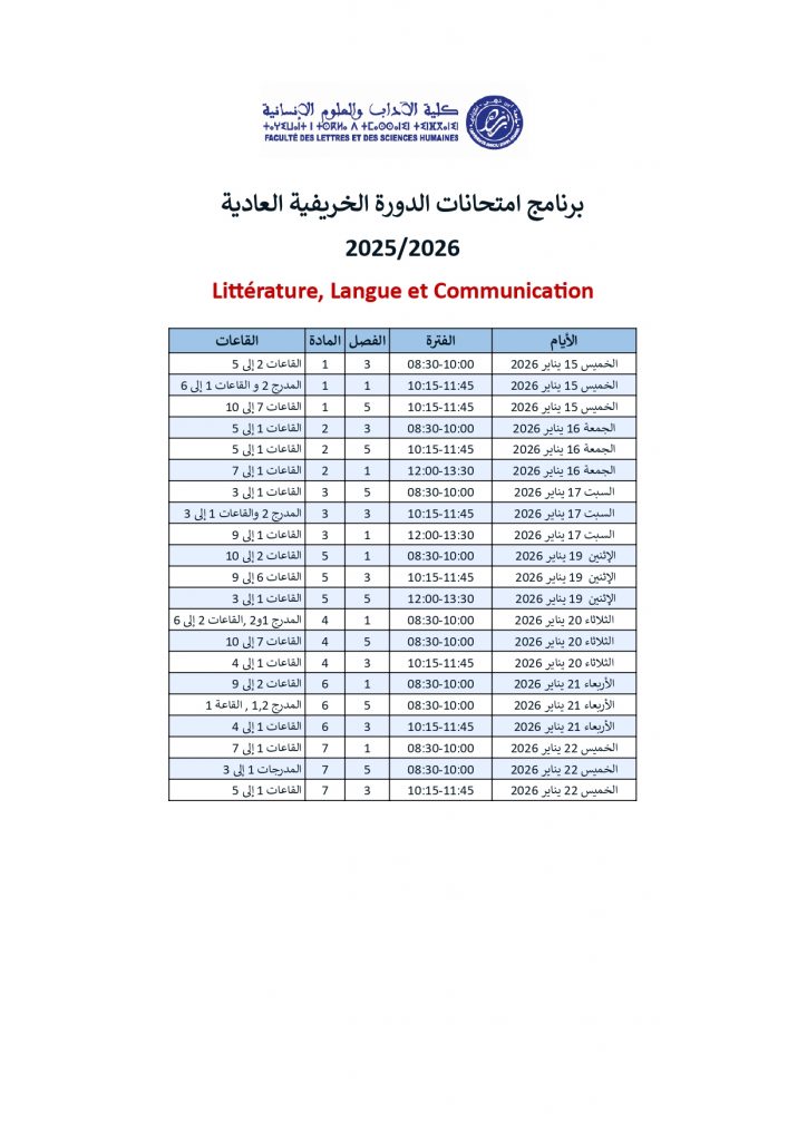 برنامج امتحانات الدورة الخريفية العادية : Littérature, Langue et Communication