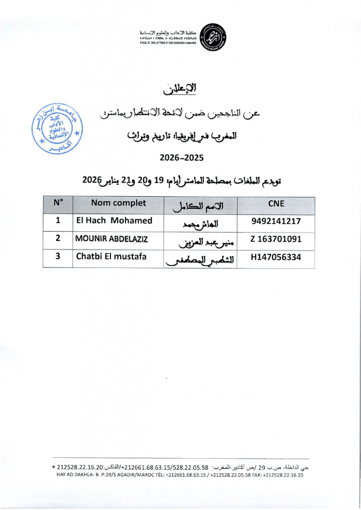 إعلان بخصوص لوائح الانتظار لولوج سلك الماستر