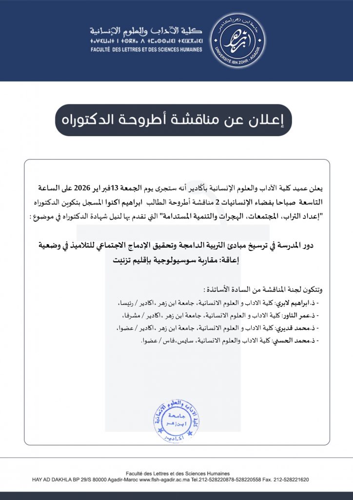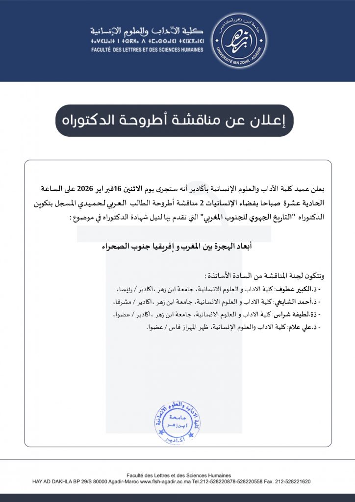 إعلانات مناقشة أطروحات الدكتوراه لشهر فبراير 2026