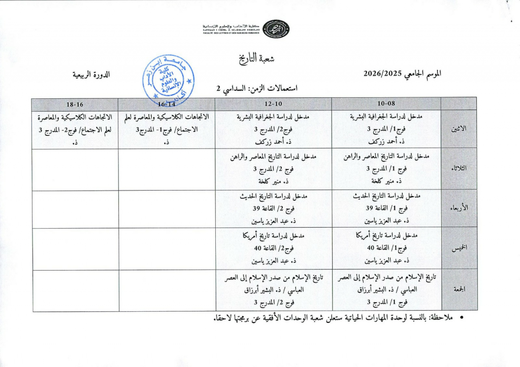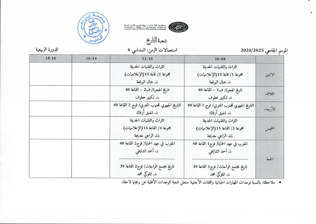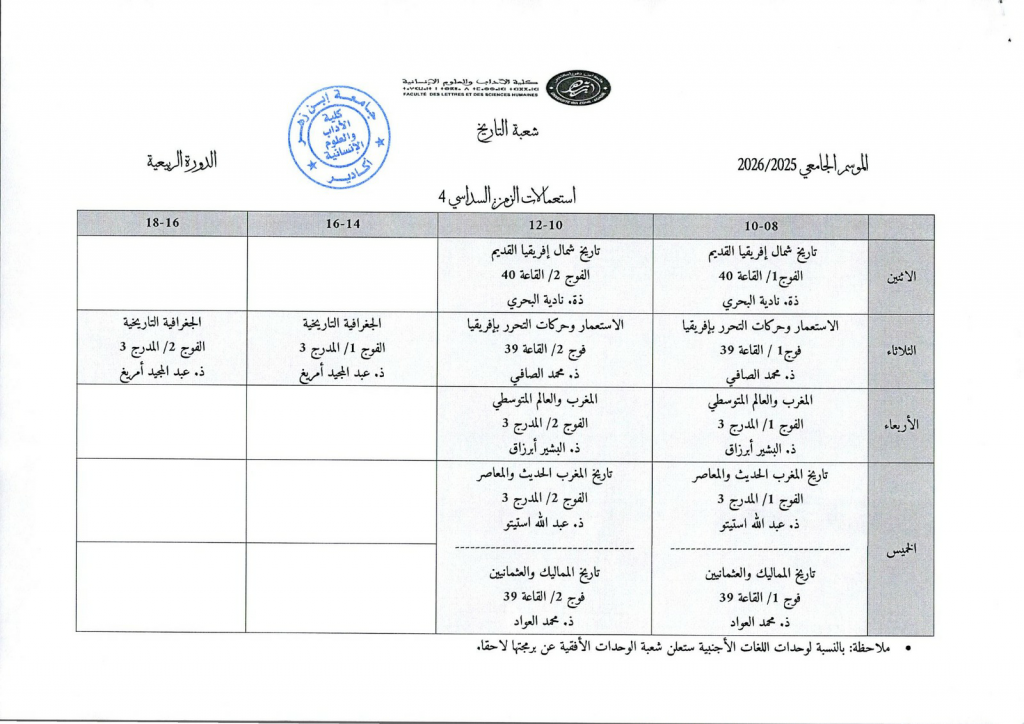 استعمال الزمن شعبة الدراسات الأمازيعية