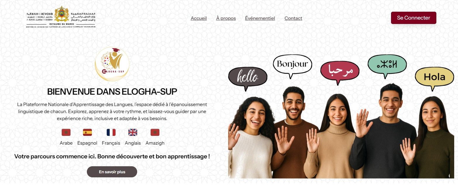 Dans le cadre des efforts visant à promouvoir l’apprentissage des langues et à renforcer les compétences linguistiques des étudiants de l’enseignement supérieur, le Ministère de l’Enseignement Supérieur, de la Recherche Scientifique et de l’Innovation a lancé la plateforme ELOGHA-SUP, une plateforme nationale offrant un espace numérique moderne dédié à l’apprentissage de plusieurs langues essentielles, notamment l’Arabe, l’Amazighe, le Français, l’Anglais et l’Espagnol.