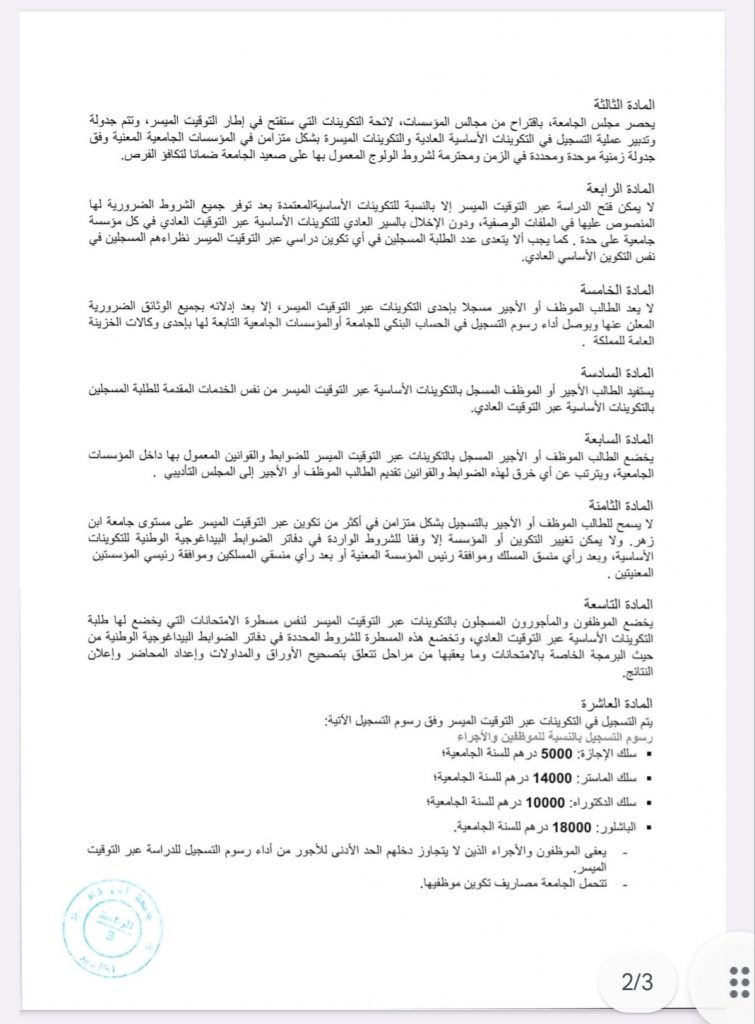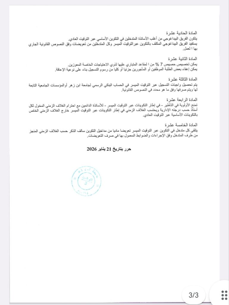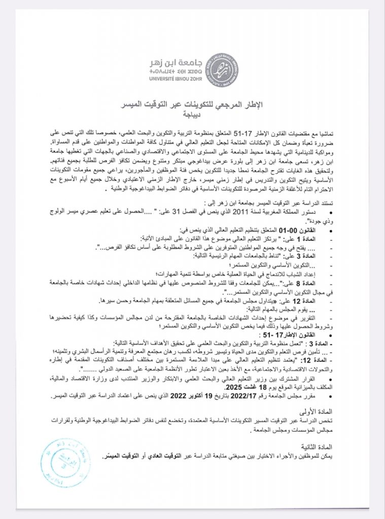 الإطار المرجعي للتكوينات عبر التوقيت الميسر