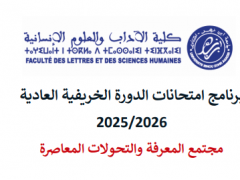 برنامج امتحانات الدورة الخريفية العادية : مجتمع المعرفة والتحوالت المعارصة 2025 – 2026
